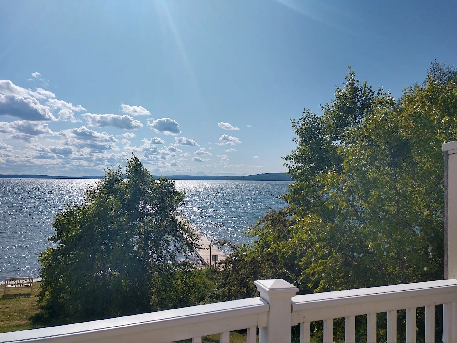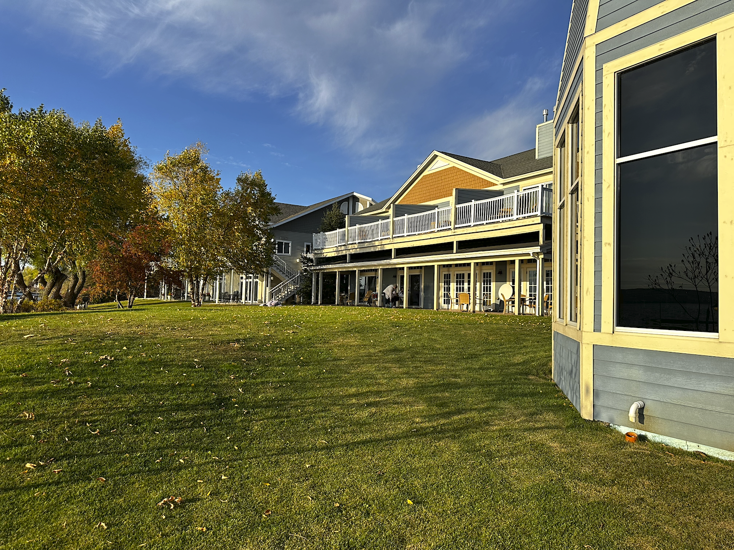 The suite has a private deck sitting area overlooking Lake Superior, the lawn and the beach.
